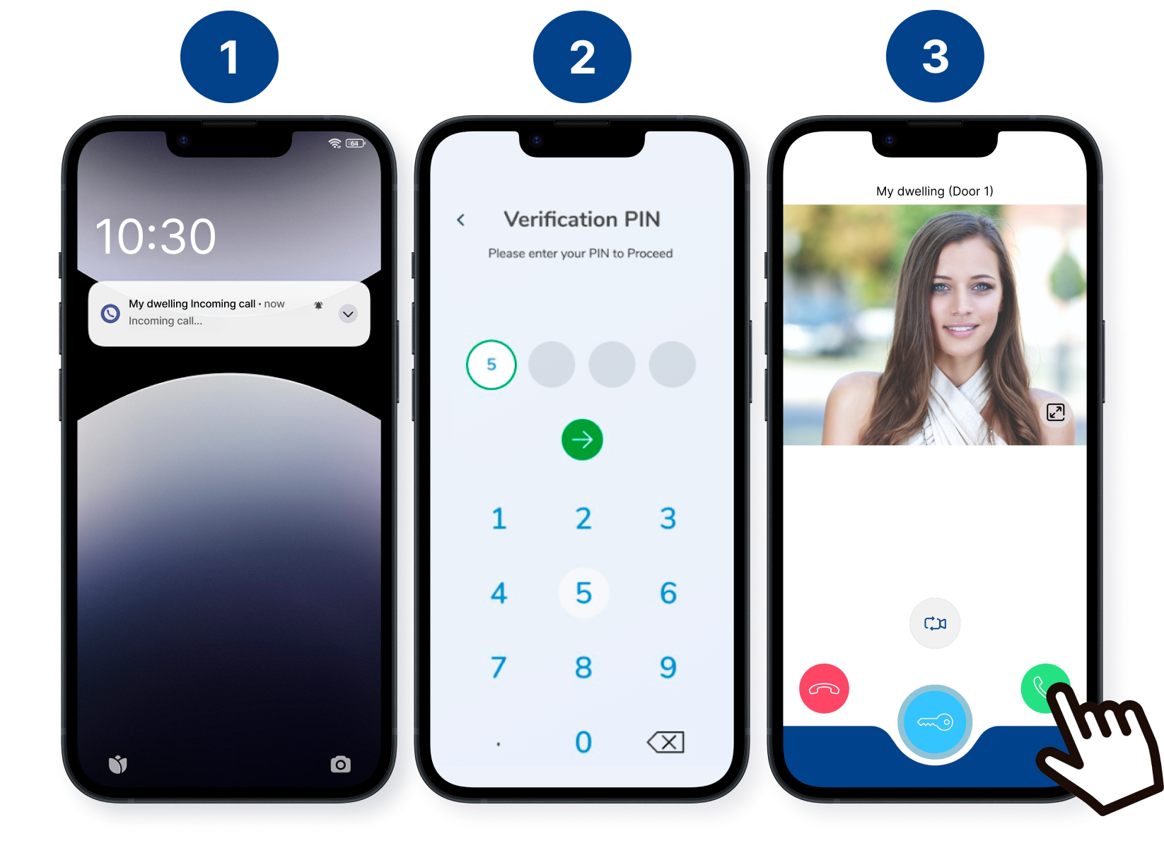 With call preview activated: the app will show the video of the visit with the mobile phone locked and you can answer the call without unlocking the mobile phone. In this case, it is recommended to activate the Confirm opening option in the app so that a security method is required when opening the door.