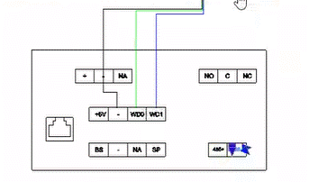 The negative will be connected to the negative power input of the EXTERNAL CONTROLLER with WIEGAND 26 input.La conexión sería la siguiente: