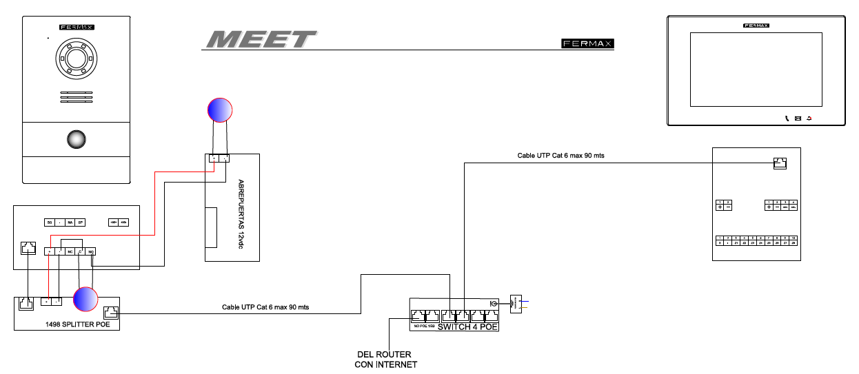 - [MEET] Installations with distances greater than 100 metres between devices- When there are distances greater than 100 meters between devices in your MEET Kit ref 1506, 1507, or 1508, the following steps must be followed: Check that it is installed as shown in the image and that the recommended distances between the switch ...