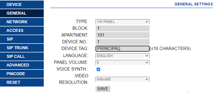 - We can have up to 9 panels configured with the same apartment number, but the device number must be different from the other panels.