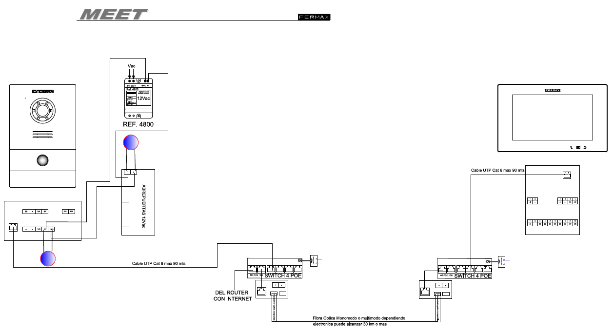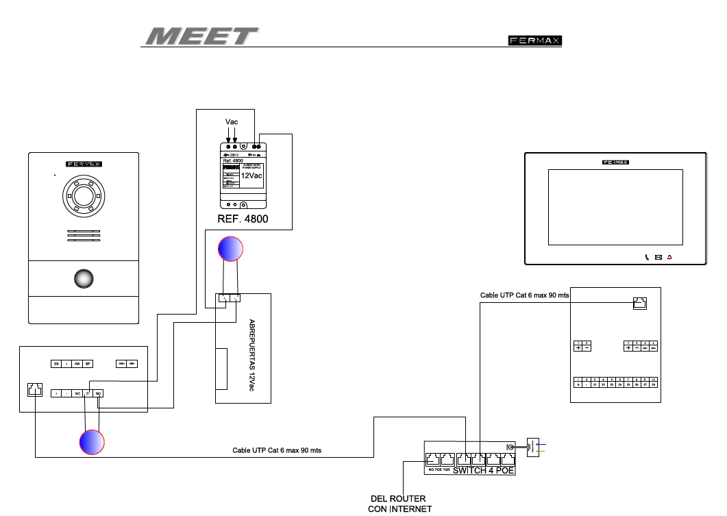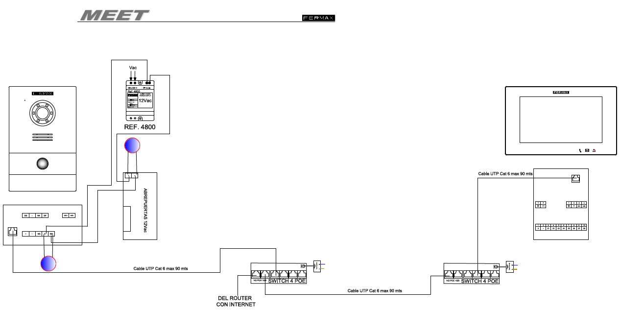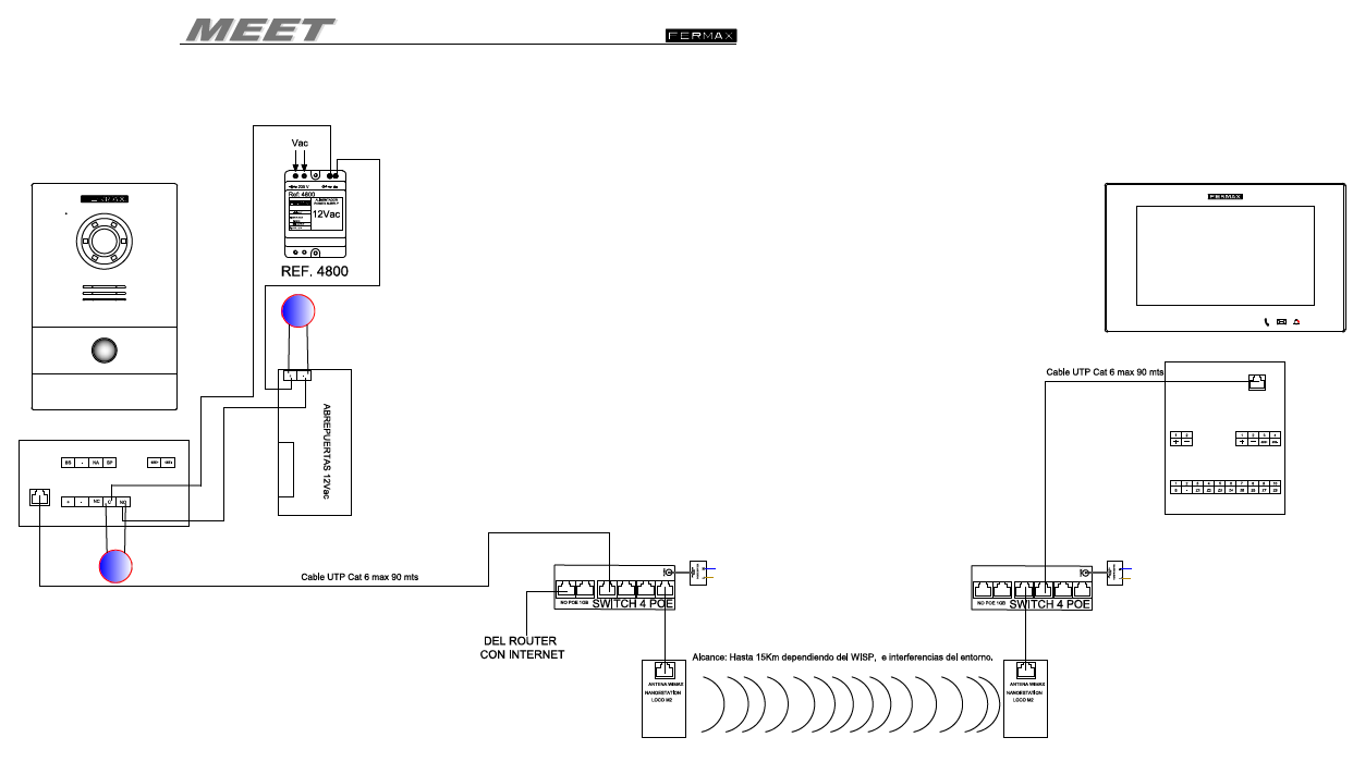 To start up the MEET Kit ref. 1506, 1507 or 1508, follow these steps: Check that it is installed as shown in the image and that the recommended distances between the switch and the devices are not exceeded If the installation is wired as shown in the ...