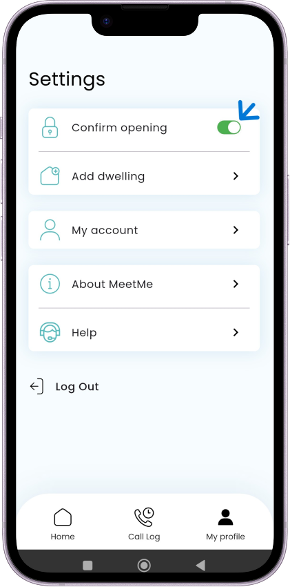 With this option activated, after pressing the door opening button, you will need to confirm it using the security code that is configured on your smartphone (face ID, PIN, etc).
