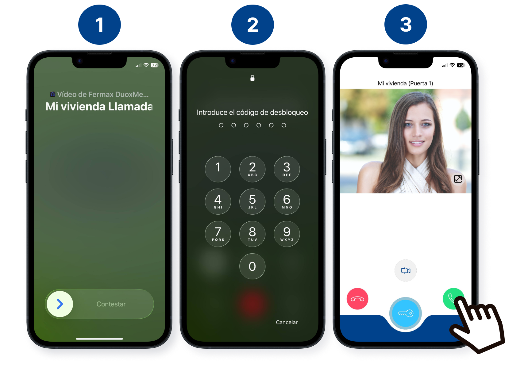 Si tu smartphone se encuentra bloqueado, será necesario que desbloquees tu smartphone para abrir la app DuoxMe y así poder ver la imagen de tu visita y abrir la puerta. Si tu smartphone no estaba bloqueado, tras atender la notificación de llamada, la ...