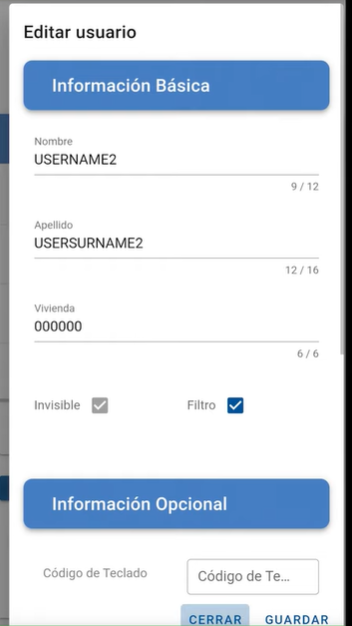 La función FILTRAR permite controlar qué usuarios pueden ser visibles y accesibles desde cada placa de calle en un sistema de control de acceso. Al activar esta opción para un usuario:
