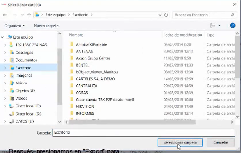 3º Pulsamos Export e idicamos donde queremos guardar el fichero de exportación.