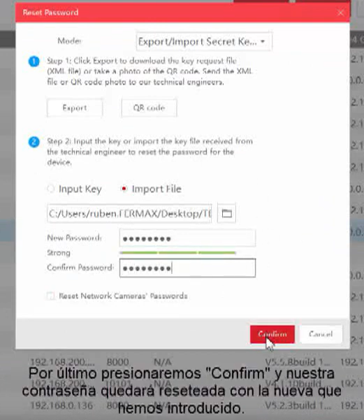 8º Por último al pulsar 'Confirm' nuestra contraseña quedará reseteada con la nueva que acabamos de introducir.