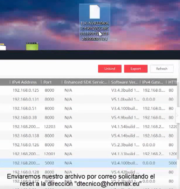 4º Buscaremos el archivo guardado y lo enviaremos al correo dtecnico@hommax.eu solicitando el reset de la contraseña.