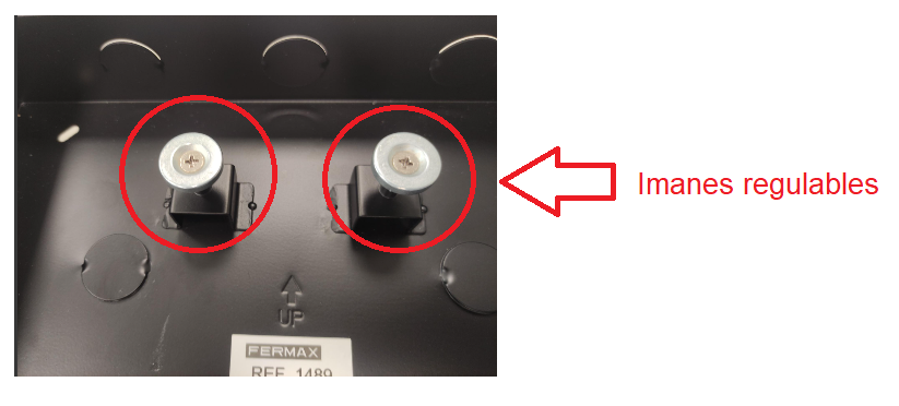 2-. Fijamos los anclajes en la caja de empotrar teniendo en cuenta que los tornillos son regulables al igual que los imanes.