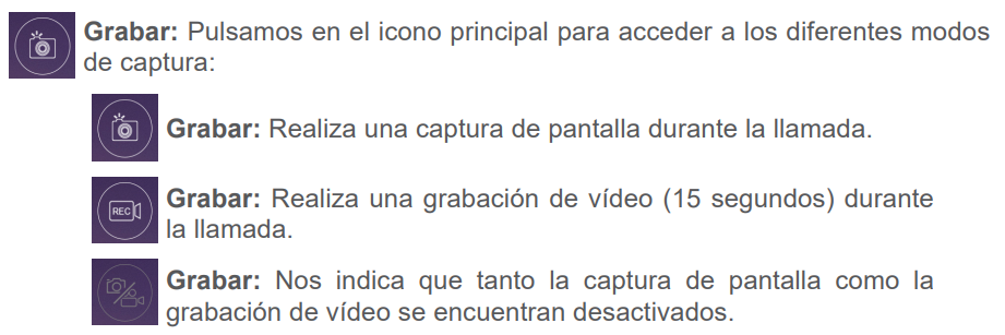 2-. Selecciona la opción grabar. Si pulsamos de manera cíclica accedemos a los diferentes modos de captura (foto/video).